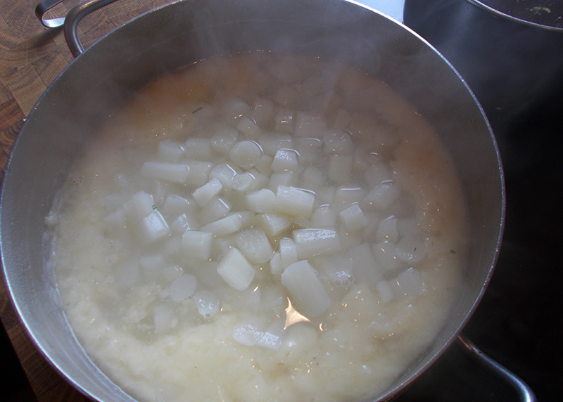 Die Suppe lässt sich gut auf Vorrat kochen und einfrieren. So hat man länger etwas von der viel zu kurzen Spargelsaison.