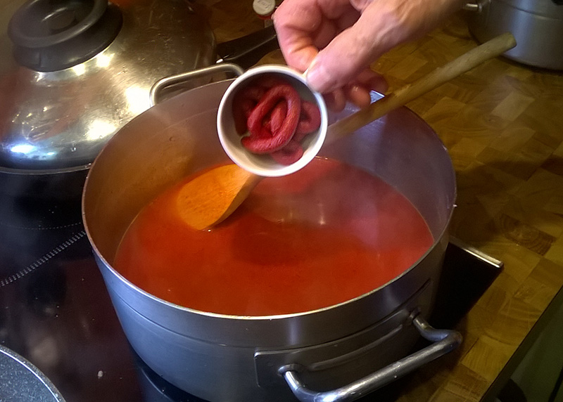… umrühren und gleich (also wirklich flott) mit einem Spritzer Essig und Wasser ablöschen (sonst wird er bitter!).