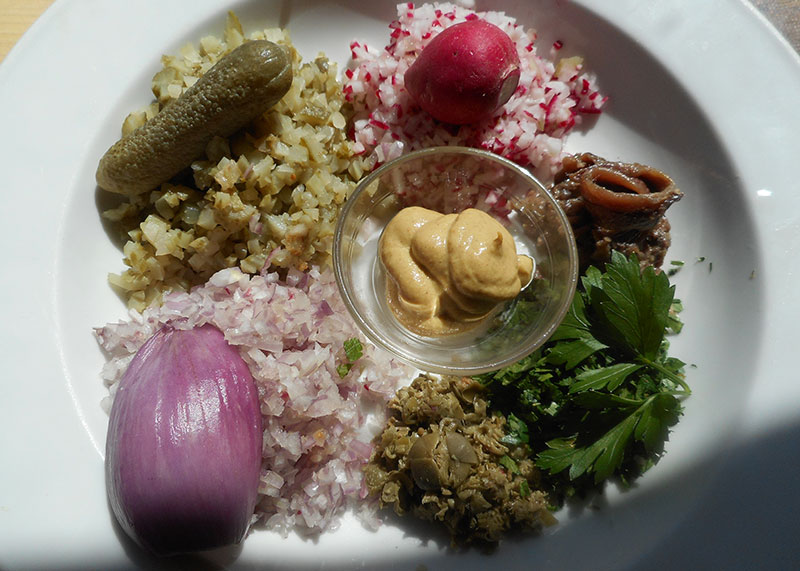 Hokuspokus – alle Zutaten sehr fein schneiden/hacken, vermischen, abschmecken, eventuell etwas Worcestersauce dazugeben – fertig!