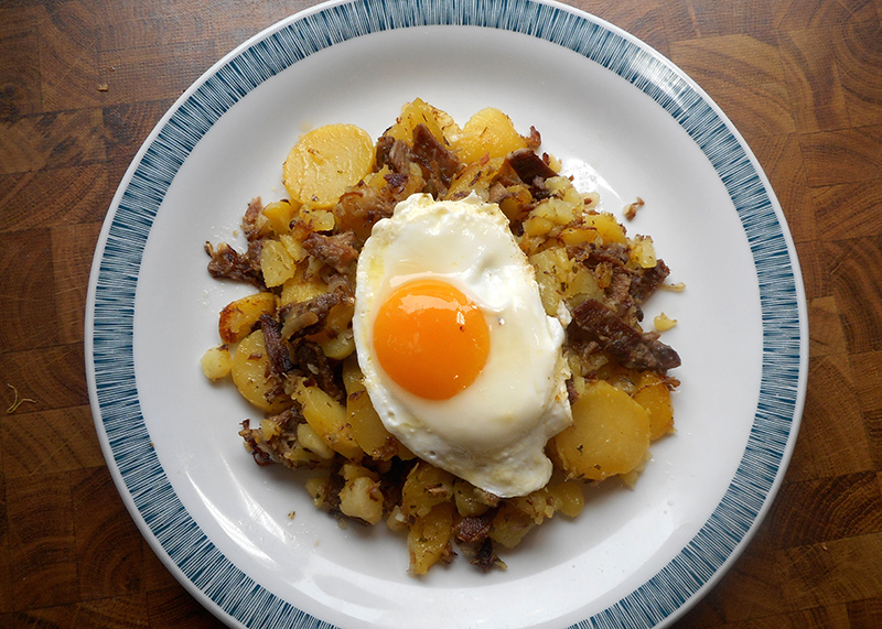 Lasst euch nicht täuschen durch den Namen: Das Herrengröstl schmeckt auch den Damen. (Außer, sie mögen kein Fleisch. Dann nicht.)