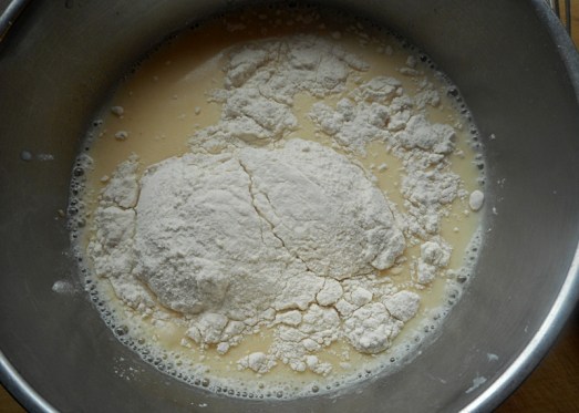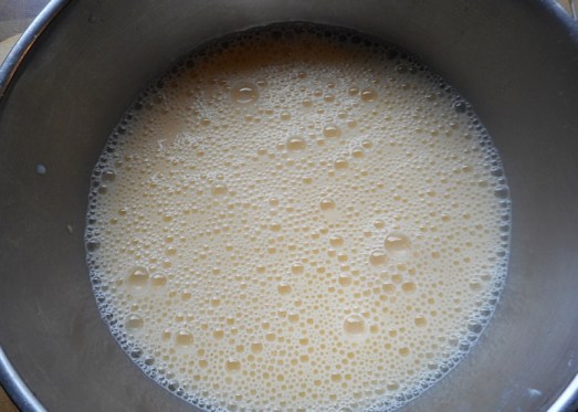 Jetzt werden die Palatschinken vorbereitet: Eier und Milch versprudeln …