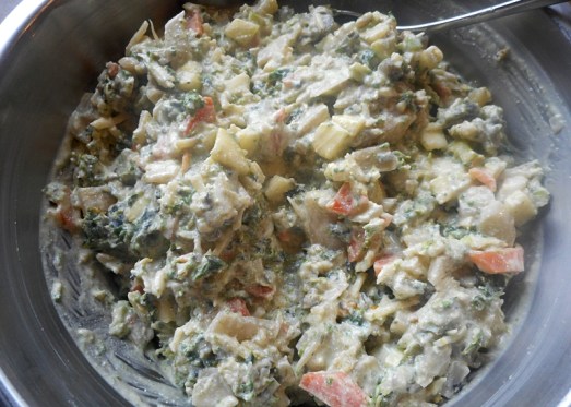 Tipp: Den Rest der Gemüsemasse mit etwas Semmelbrösel vermischen und Laibchen formen. Die Gemüselaibchen einfrieren und später braten.