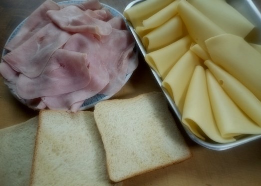 Toastbrot großzügig zuerst mit Schinken und dann mit Käse belegen.
