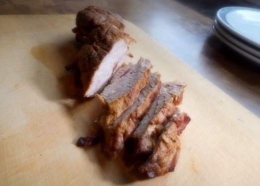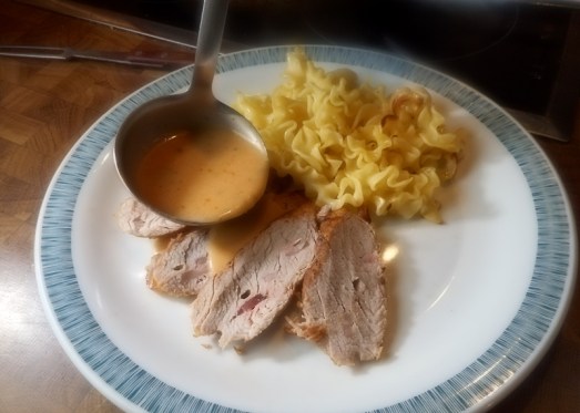 Gespickter Schweinslungenbraten mit Rahmsauce