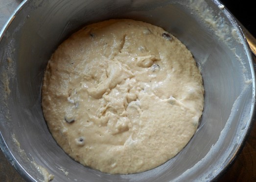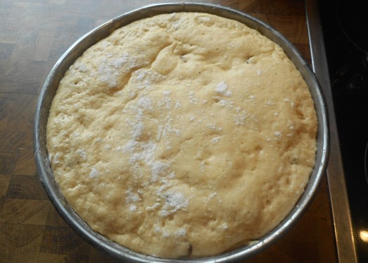 Wieder ein wenig mit Mehl bestauben, zudecken und an einer warmen Stelle ca. eine Stunde rasten lassen (bis er schön aufgegangen ist).