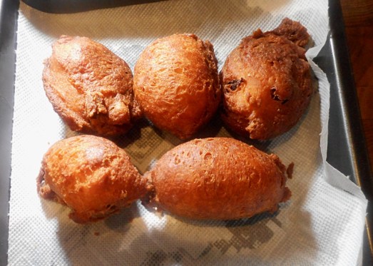 In einer tiefen Pfanne Fett erhitzen. Mit einem Löffel Teig ausstechen und im heißen Fett nicht zu schnell herausbacken, bis die gebackenen Mäuse rundherum eine schöne Farbe haben.