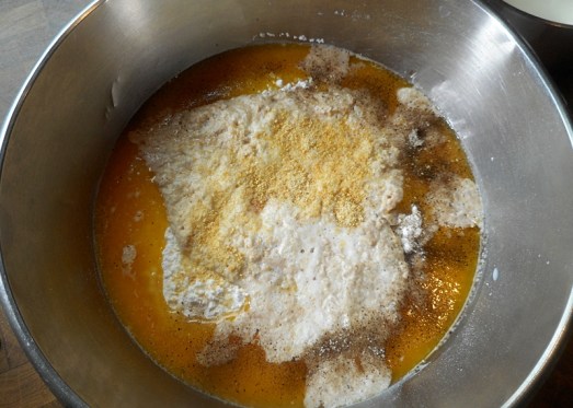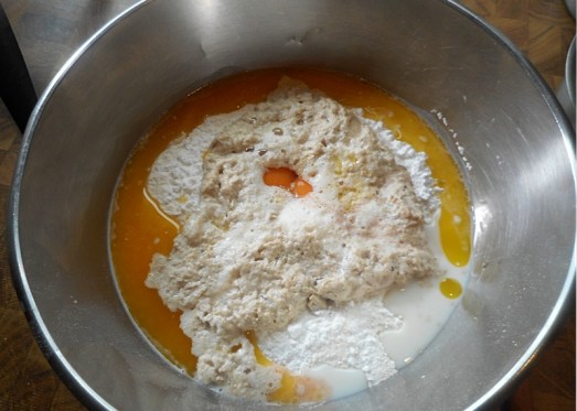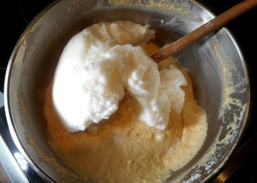 Dann mit den Dottern, dem Rest der Milch, dem restlichen Zucker, der zerlassenen Butter …