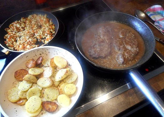 Mit Wein und Suppe aufgießen, köcheln lassen …