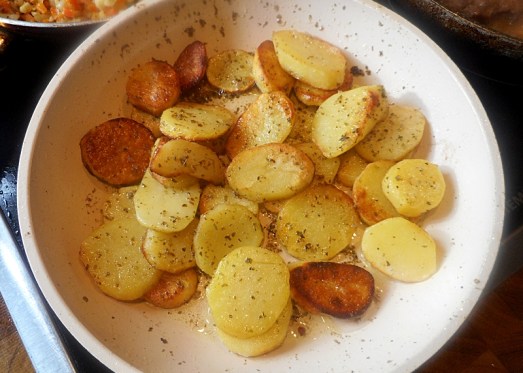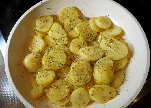 Die Kartoffelscheiben in Öl und Butter anrösten …