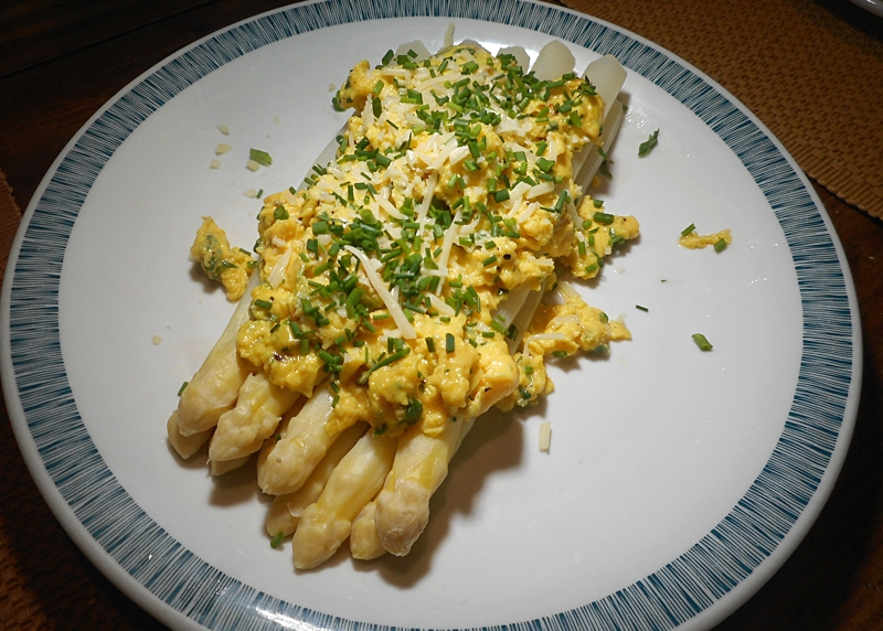 spargel_ruehrei_6 Veröffentlicht 31. Mai 2019 um 800 × 572 in Spargelwochen: von der Kräuterkruste bis zu Spargel nach polnischer Art ← Zurück Den Spargel aus dem Kochwasser direkt auf den Teller heben, das Rührei darauf verteilen und mit Parmesan bestreuen. Trackbacks nicht möglich, Du kannst aber einen Kommentar schreiben.