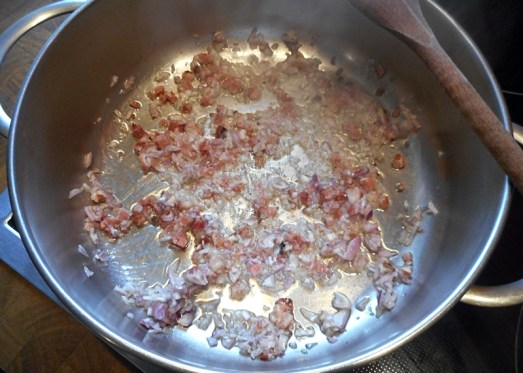 Zwiebel und Speck in etwas Öl glasig anrösten …