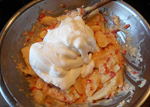 Im auf 180 Grad vorgeheiztem Rohr 35 Minuten backen.