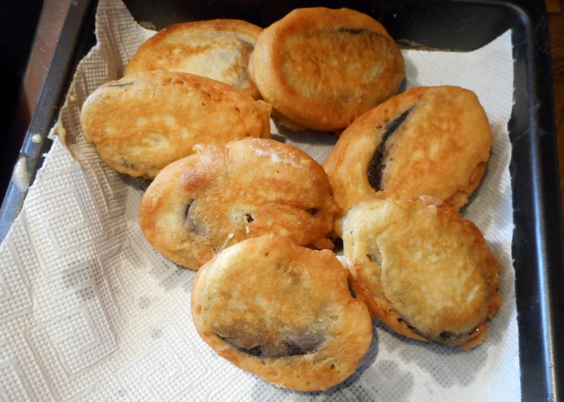 Die Blutwurstscheiben in den Teig tauchen und in heißem Butterschmalz oder Öl backen. Kurz auf Papiertücher legen (um das überschüssige Fett aufzusaugen).