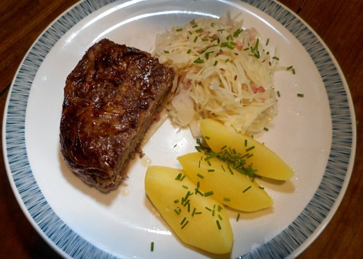 Als Beilage schmeckt wunderbar Sauerkraut oder warmer Krautsalat.