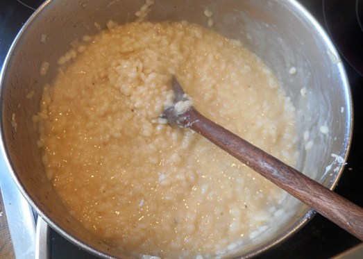 Nach 15 Minuten ist der Reis weich und cremig. Butter und Käse unterziehen, mit Salz und Pfeffer abschmecken.