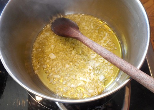 … den Reis in ein wenig Öl glasig anrösten.