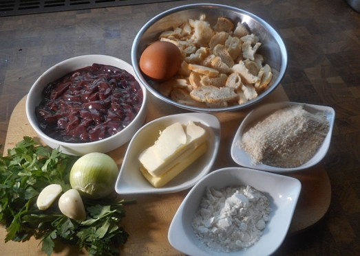 Zutaten: 200 g Schweinsleber, 2 Semmeln, 1 Ei, 50 g Butter, 60 g Semmelbrösel, 20 g Mehl, 1 Zwiebel, 1 Knoblauchzehe, Petersilie, Majoran, Salz, Pfeffer