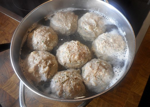 Die fertige Leberknödel-Masse soll eine halbe Stunde rasten, dann schöne Knödel formen und diese in kochender Rindssuppe oder leicht gesalzenem Wasser 15 Minuten ziehen lassen.