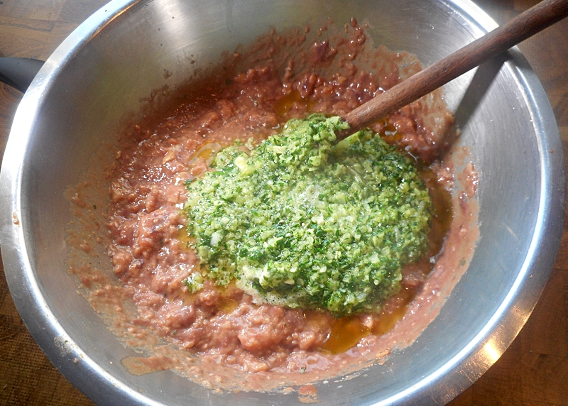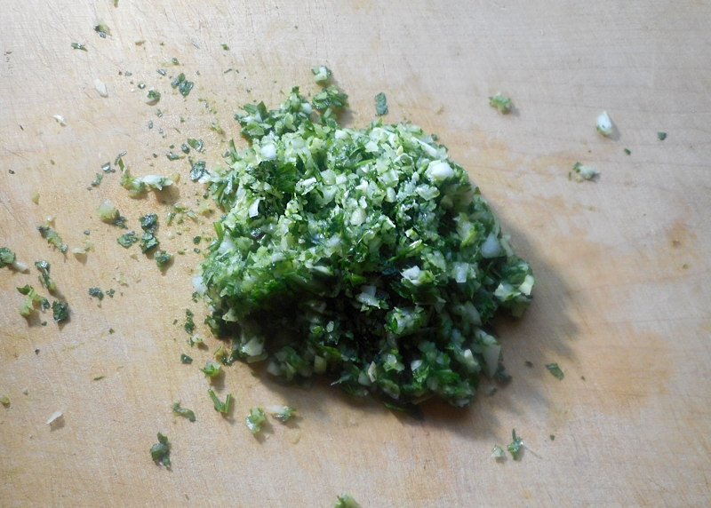 Zwiebel, Knoblauchzehe und Petersilie fein hacken, vermischen und …