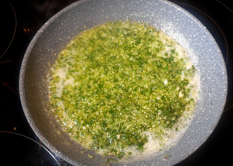 … in heißer Butter leicht anlaufen (ganz kurz rösten) lassen.