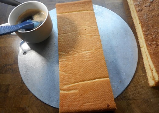 Den kalten Kaffee mit einem Schuss Rum vermischen. Den Biskuit in gleich breite Streifen schneiden und mit dem Kaffee gut benetzen.