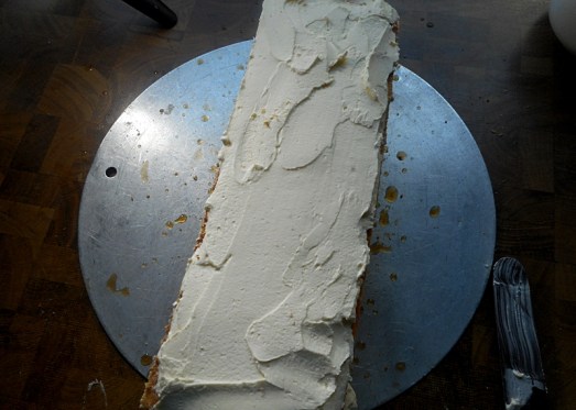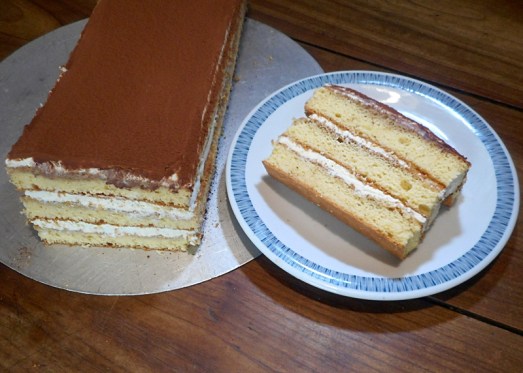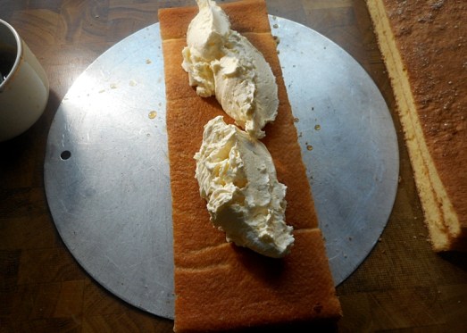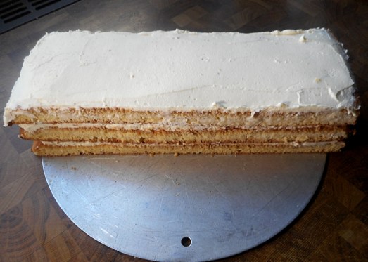 Jetzt wird geschichtet: Biskuit mit Creme füllen, mit Biskuit bedecken, wieder Creme, wieder Biskuit … ob zwei oder drei oder mehr Schichten, den Abschluss bildet immer die Creme.