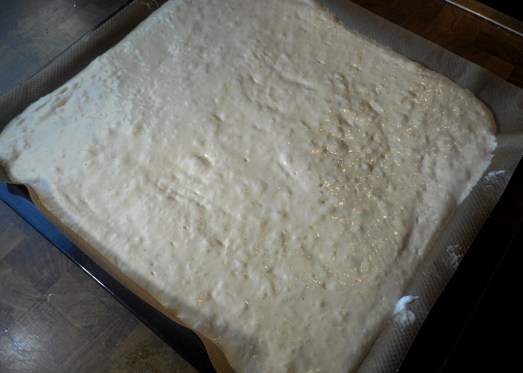 Die Masse auf ein mit Backpapier ausgelegtes Backblech streichen und …