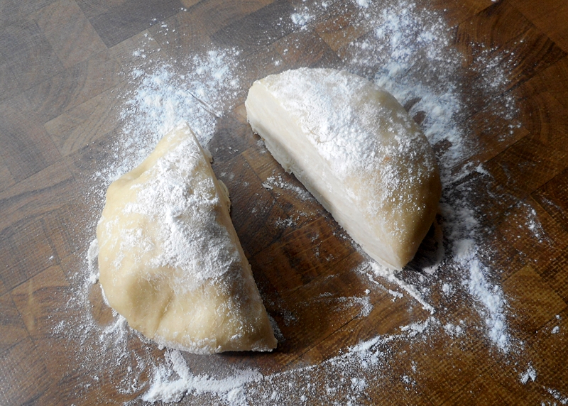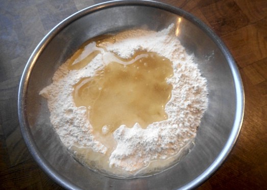 Zuerst wird das Mehl mit Öl, Wasser und Salz zu einem glatten Teig verarbeitet, den man 30 Minuten im Kühlschrank ruhen lässt.