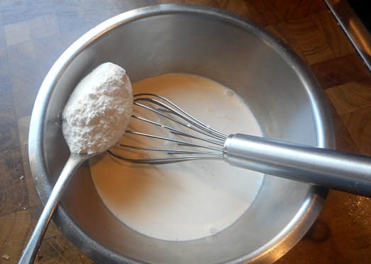 Für die Sauce ein „Gmachtl“ vorbereiten (Obers mit einem gehäuften EL Mehl verrühren).
