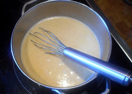 … das Gmachtl mit einem Schneebesen einrühren, noch einmal aufkochen lassen.