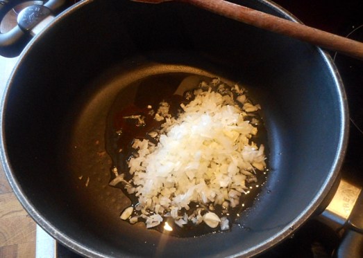 Die fein geschnittene Zwiebel in etwas Öl leicht anrösten.