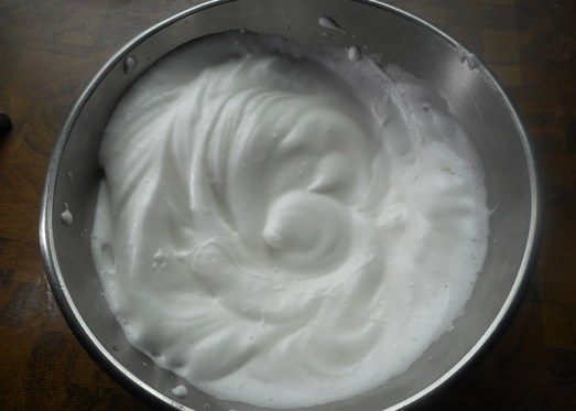 Die Eiklar mit einem Spritzer Zitronensaft zu Schnee schlagen. Wenn der Schnee halbfest ist, den Zucker dazugeben und fertig schlagen. Die Marillenmarmelade erwärmen.