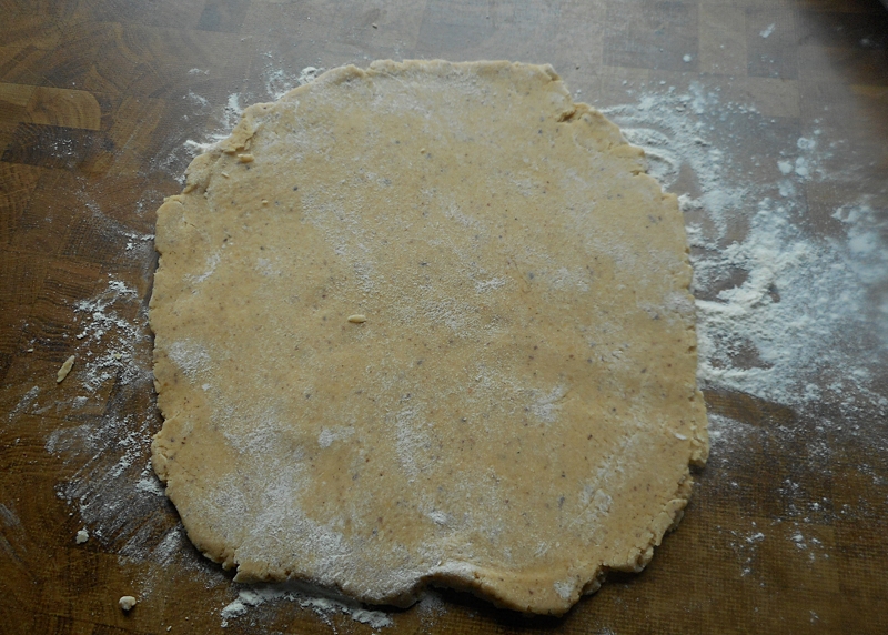 Den Teig ausrollen, in die eingefettete Form legen und mit den Apfelscheiben belegen. Im vorgeheizten Backrohr bei 180 Grad 25 Minuten backen.