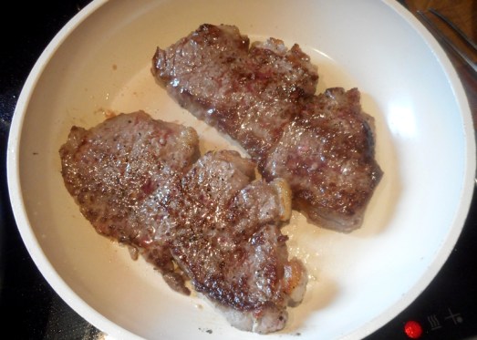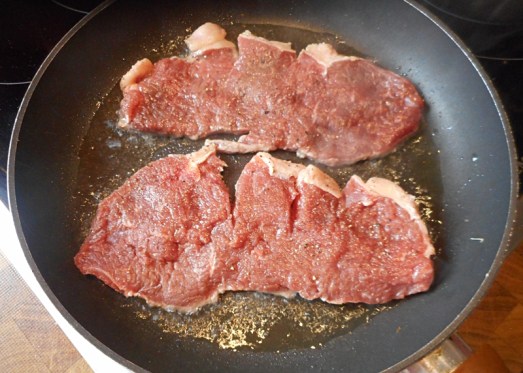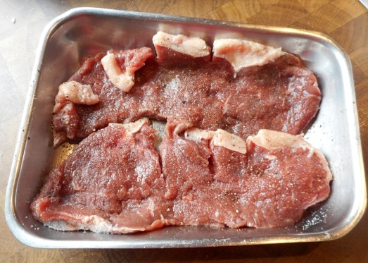 Die mit Salz und Pfeffer gewürzten Rostbraten …