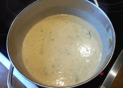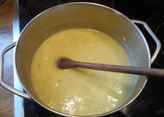 Den Porree in ein wenig Butter anschwitzen und in die Suppe geben. Abschmecken, aufkochen und fertig: Mahlzeit!