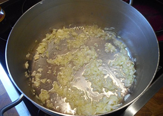 Die Gemüsewürfel dazugeben, etwas durchrösten lassen.