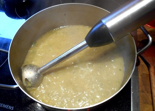 Die Suppe mit einem Stabmixer pürrieren, mit Obers verfeinern und noch einmal kurz aufkochen lassen.