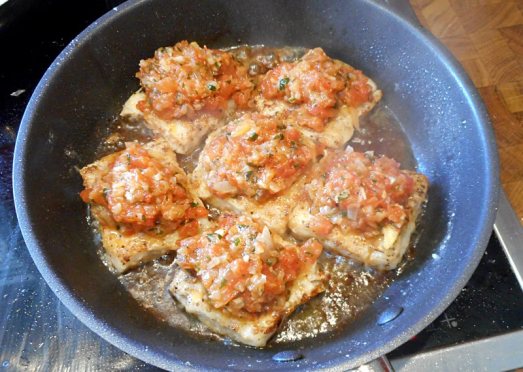 Die Tomaten auf den Fisch setzen und …