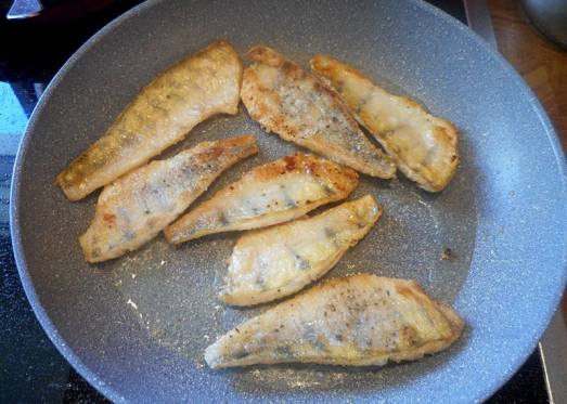 Die Zanderfilets salzen, pfeffern, mit Zitronensaft beträufeln und mehlieren. In wenig Öl beidseitig anbraten.