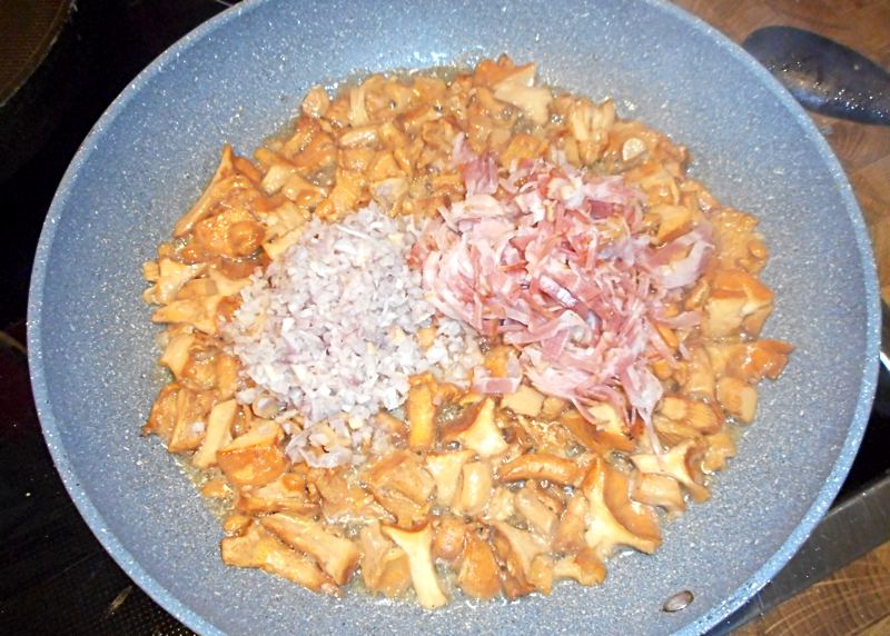 Kleingeschnittene Zwiebel und gewürfelten Speck in die Schwammerl mischen und …