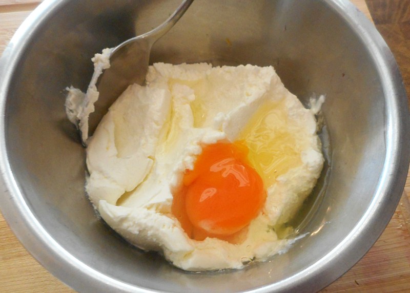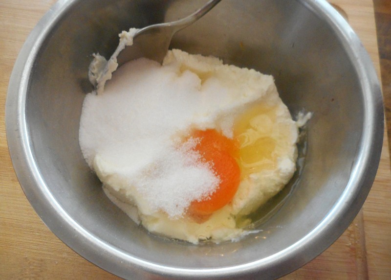 Zuerst wird der Teig vorbereitet, weil der ja ein wenig rasten soll. (Schritt-für-Schritt-Bilder siehe hier.) Mehl, Zucker, Dotter und Butter (sollte Zimmertemperatur haben), Obers, Weißwein oder Most, einen Spritzer Essig und eine Prise Salz in eine Schüssel geben und gut durchkneten, bis sich ein glatter Teig formen lässt. Teig zu einem Strietzl rollen, mit Klarsichtfolie bedecken und in den Kühlschrank geben – für eine halbe Stunde.