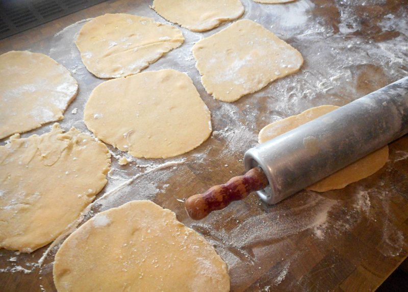 Die Teigstücke auf einer bemehlten Fläche ausrollen.