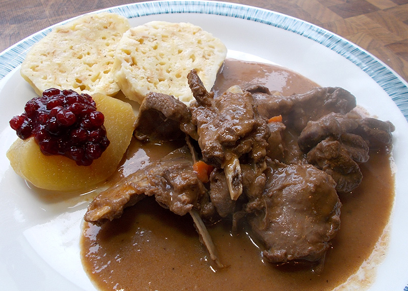 Ein Rezept aus dem Rezeptarchiv für alle, die gern Wild essen. Inklusive dem Rezept für Lebkuchen à la Herr Peschka, die zum Rehragout gehören wie die Knödel zur Sauce. 🙂