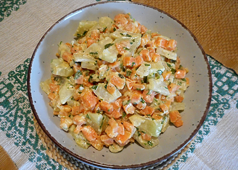 Zutaten: ein schöner Sellerie, Bier, drei Eier, drei bis vier gehäufte Esslöffel Mehl, Muskat, Salz, Pfeffer