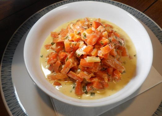 Zutaten Gemüsebeilagen: Zwiebel, Karotten, Sellerie, Petersilie, getrocknete Tomaten, Öl, Salz, Pfeffer
