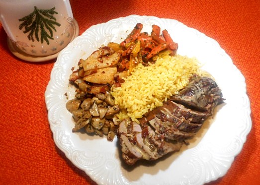 Zutaten Safranreis: 1 Becher Reis, 1 1/2 Becher Wasser (oder Suppe), Safranfäden, Salz, eventuell eine kleine, mit Gewürznelken gespickte Zwiebel