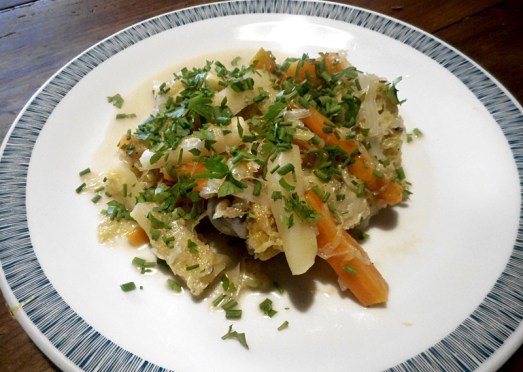 Der Frühling kommt, die Teller werden bunter und das Huhn versteckt sich unter Kraut und Gemüse. Ebenso gut wie bekömmlich!