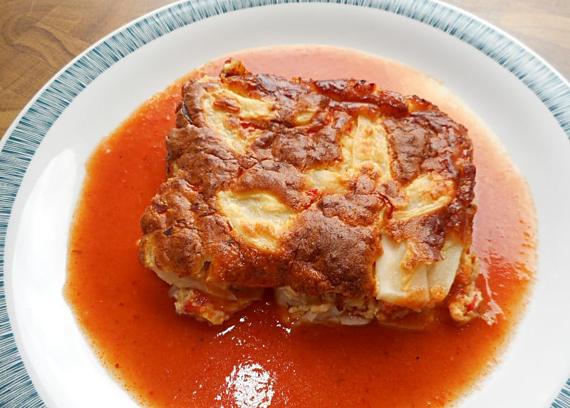 Zutaten und Zubereitung für die Beilagen gibt es bei den jeweiligen Rezepten: Blaukraut (Rotkraut) und Böhmische Knödel