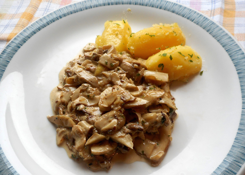 Zutaten Schnittlauchsauce: 1 Bund Schnittlauch, Zwiebel, Butterschmalz, 2 bis 3 EL Mehl, Obers nach Belieben, ein Spritzer Weißwein, etwas Bouillon zum Ablöschen, Salz, Pfeffer, Muskat