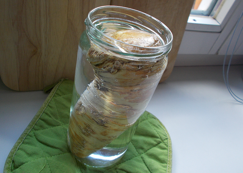 Wer die Wunderwurzel nicht einfrieren mag, dem empfiehlt sich die Aufbewahrung nach alter Wirtshaustradition: Im Kühlschrank, in einem Glas Wasser. Das Wasser unbedingt täglich wechseln – wer es nicht tut, dem droht ein Geruchsdesaster der Extraklasse. Bleibt das Wasser frisch, bleibt es auch der Kühlschrank.